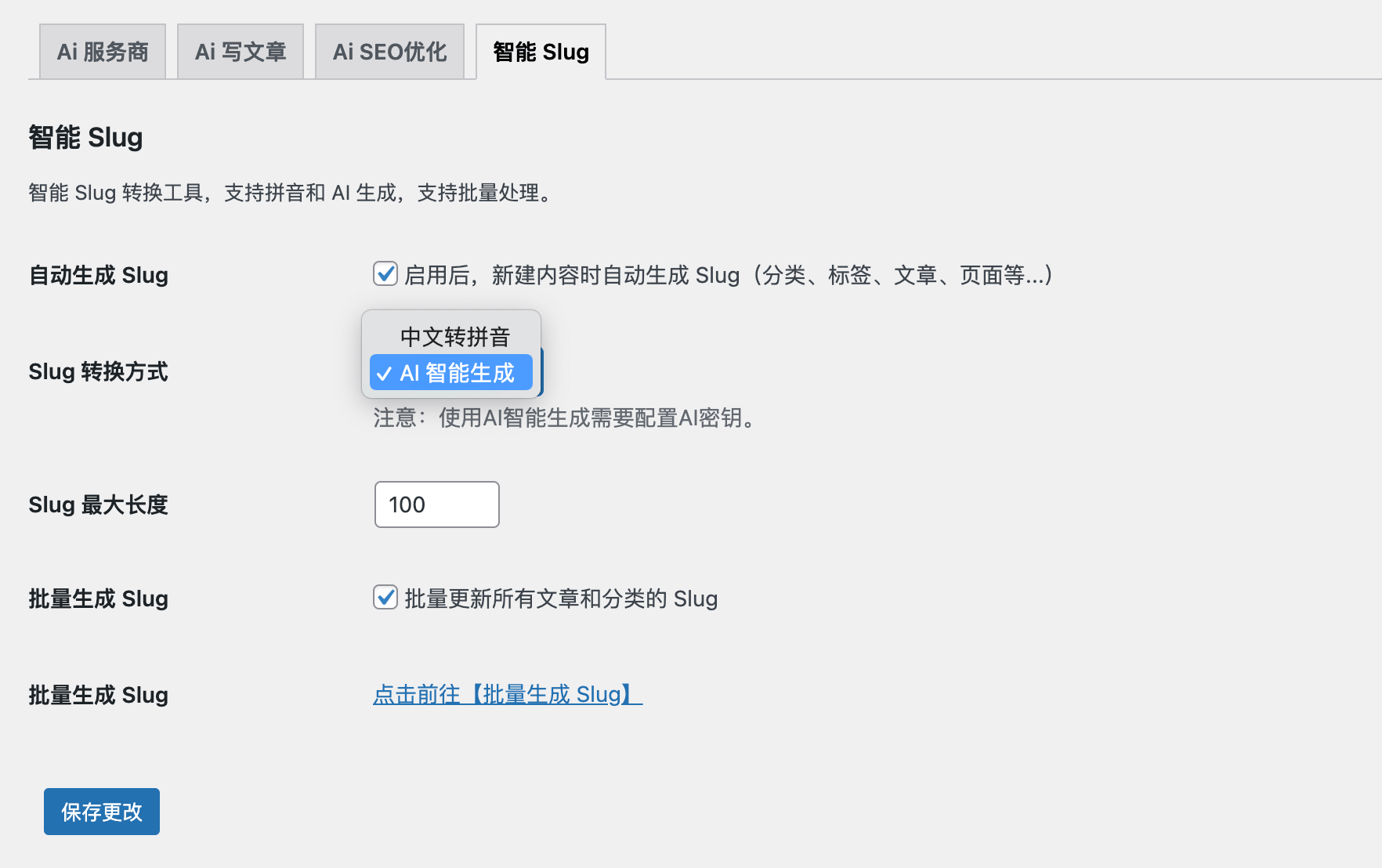 在数字化内容爆炸的时代,单靠人工已经很难高效、持续地产出高质量内容。我们这款WordPress插件事 专为 WordPress 打造的 AI 内容与 SEO 自动化工具,集 AI 写文章、AI SEO 优化、智能 Slug 生成 于一体,帮助站长、内容编辑和团队大幅提升效率,降低运营成本。