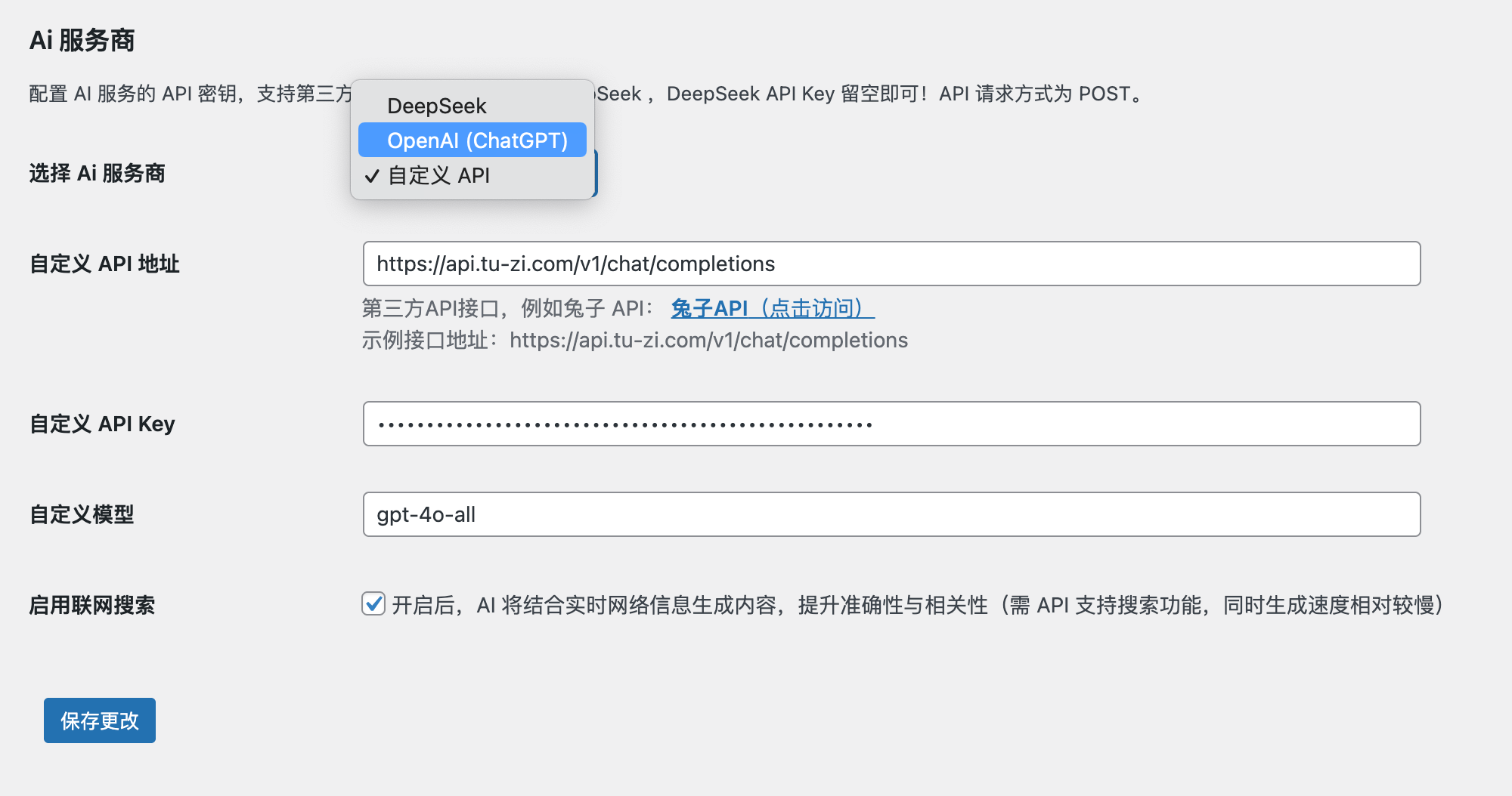 如果你已经在使用其他 SEO 优化插件,或希望继续沿用当前 WordPress 主题自带的 SEO 功能,也完全没有问题。插件支持 自定义 SEO 字段,可将 AI 生成的 SEO 标题、描述和关键词,自动写入你指定的 SEO 字段中,实现与第三方主题或插件的无缝兼容。